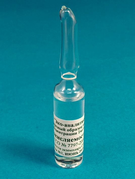 ГСО окисляемость перманганатная с концентрацией 1 г/л и фон-водой (ГСО 7797-2000) — это государственный стандартный образец перманганатной окисляемости воды с аттестованным значением 1,00 мг/см³. Представляет собой раствор щавелевой кислоты в дистиллированной воде