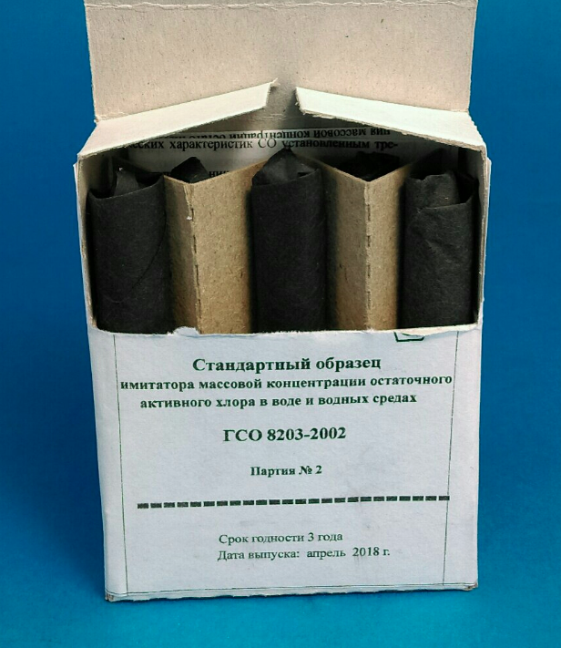 » ГСО » СО имитатор массовой концентрации остаточного активного хлора в воде и водных средах, 1 г/л (5 ампул 6 мл) (ГСО 8203-2002)