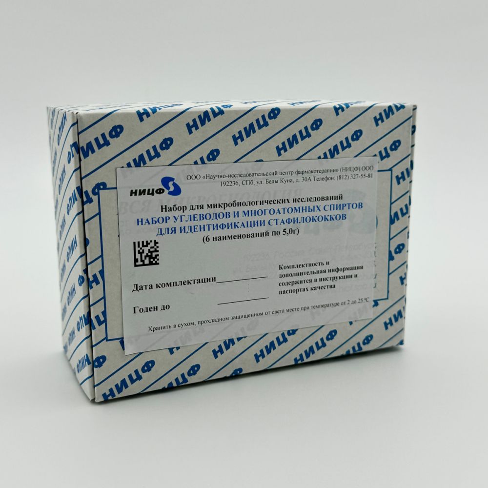 Описание Набор сахаров для идентификации стафилококков по 5 гДиагностический набор для идентификации стафилококковНазначениеДиагностический набор предназначен для определения ферментативных свойств выделенных культур стафилококков с целью их последующей идентификации. Позволяет провести комплексное исследование способности микроорганизмов к ферментации различных субстратов. Принцип действияМетод исследования основан на качественном визуальном определении типа ферментации различных субстратов (углеводов и многоатомных спиртов). Механизм работы: при внесении исследуемой культуры стафилококков в питательную среду с определенным субстратом происходит ферментация, что приводит к изменению pH среды. Положительная реакция определяется по изменению окраски индикатора в питательной среде. Состав набораНабор включает 6 различных субстратов: