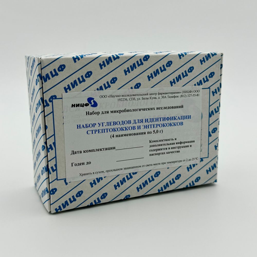Описание Набор сахаров для идентификации стрептококков и энтерококковДиагностический набор для идентификации стрептококков и энтерококковНазначениеДиагностический набор предназначен для определения ферментативных свойств выделенных культур стрептококков и энтерококков с целью их последующей идентификации. Позволяет провести комплексное исследование способности микроорганизмов к ферментации различных субстратов. Принцип действияМетод исследования основан на качественном визуальном определении типа ферментации различных субстратов (углеводов, многоатомных спиртов и гликозидов). Механизм работы: при внесении исследуемой культуры бактерий в питательную среду с определенным субстратом происходит ферментация, что приводит к изменению pH среды. Положительная реакция определяется по изменению окраски индикатора в питательной среде. Состав набораНабор включает 4 различных субстрата: