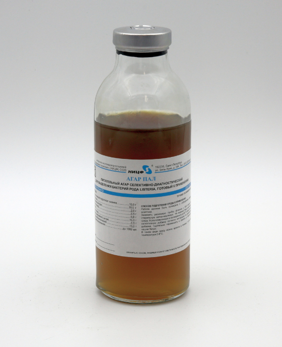 Питательный агар ПАЛ — это готовая к применению селективно-диагностическая среда, которая используется для выявления бактерий рода Listeria, включая Listeria monocytogenes, в пищевой продукции. Среда обеспечивает оптимальные условия для роста листерий за счёт высокого содержания питательных веществ, подавление сопутствующей микрофлоры благодаря хлориду лития, визуальную идентификацию Listeria monocytogenes по характерному почернению среды вокруг колоний (результат гидролиза эскулина с образованием эскулетина и его взаимодействия с ионами железа).