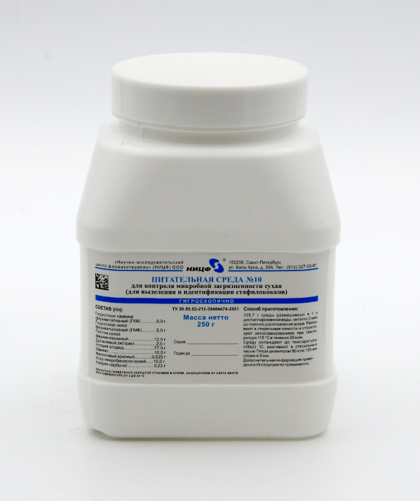 » Питательные среды » Среда для определения микробной загрязненности № 10. Питательная среда для выделения и идентификации стафилококков (Staphylococcus aureus) сухая. Маннит-солевой агар. 0,25 кг