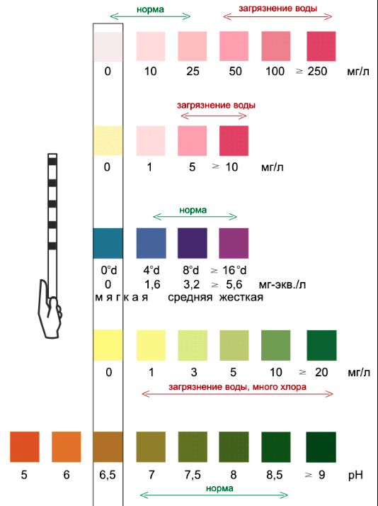 Тест-полоски для определения качества воды — это индикаторные полоски, предназначенные для определения в воде концентрации нитратов, нитритов, хлора, жесткости воды и рН (кислотности).