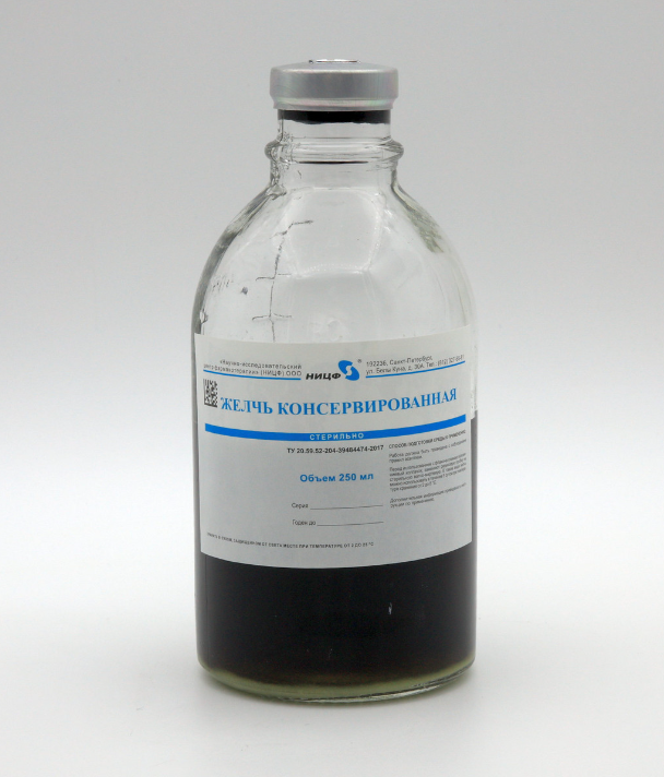 Вносится в состав сред в соответствии с рецептурой конкретного метода бактериологического анализа. Состав на 1 л: Желчь КРС (крупного рогатого скота) - 1000 мл Срок годности: 6 месяцев Отзывы о Желчь консервированная, 250 млОтзывов пока не было. Вы можете оставить его первым